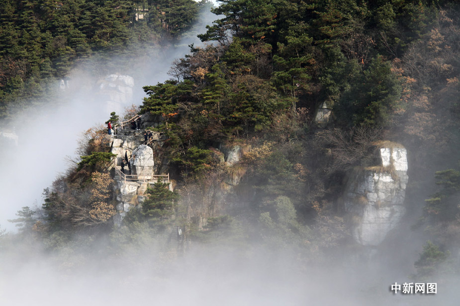 11月29日,受北方弱冷空氣影響,廬山出現(xiàn)平流云、佛光奇觀,佛光持續(xù)了近二個多小時。當日,整個廬山被濃濃的云霧所籠罩,若隱若現(xiàn),宛如仙境。(胡國林 陳飛)