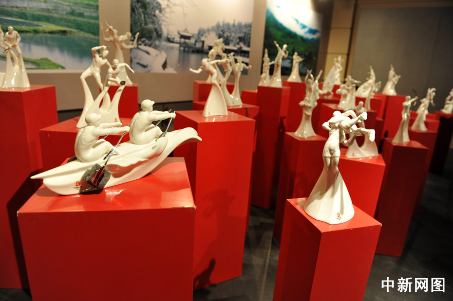 圖為現(xiàn)場(chǎng)展示的景德鎮(zhèn)精品陶瓷作品。中新網(wǎng)記者 金碩 攝