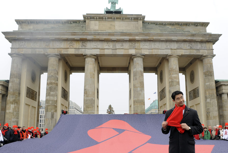 11月30日,德國(guó)衛(wèi)生部長(zhǎng)在為艾滋病日做宣傳。12月1日是世界艾滋病日,2009年世界艾滋病日的主題是“普遍可及和人權(quán)”。世界各地民眾組織各種活動(dòng)呼吁人們關(guān)注艾滋病。圖片來(lái)源:中國(guó)新聞網(wǎng)