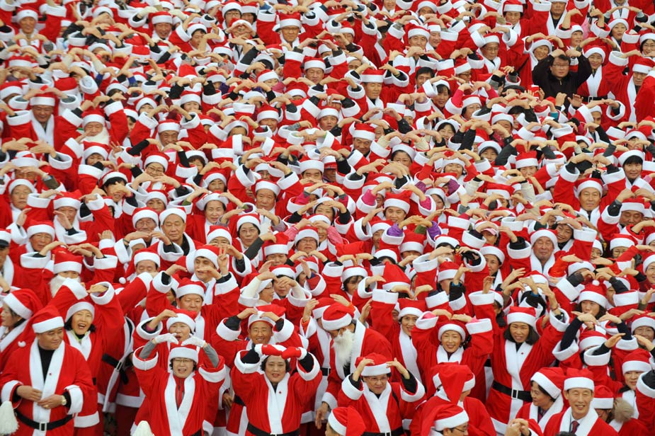 12月1日,韓國首都首爾市,一千多名“圣誕老人”舉行游行為社會慈善項(xiàng)目籌款。圖片來源:中國新聞網(wǎng)