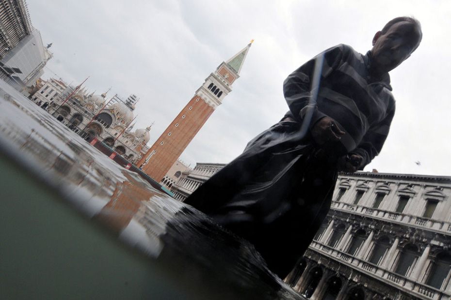 11月30日,意大利水城威尼斯受潮汐和一股強烈的熱帶風(fēng)暴影響再次被洪水淹沒,部分地區(qū)最高水位達到1.31米。圖片來源:中國新聞網(wǎng)