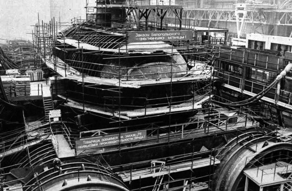 圖為建造中的“臺(tái)風(fēng)”級(jí)頂層耐壓殼體。圖片來源:人民網(wǎng)