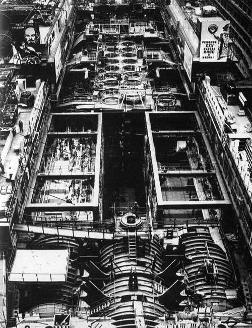 列寧頭像標(biāo)語在干船塢兩側(cè)。圖片來源:人民網(wǎng)
