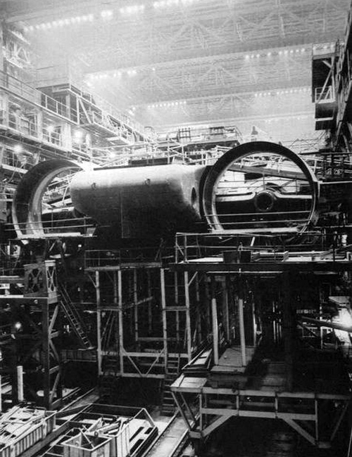 圖為建造中的“臺(tái)風(fēng)”級(jí)巨大的涵道式螺旋槳推進(jìn)器。圖片來(lái)源:人民網(wǎng)