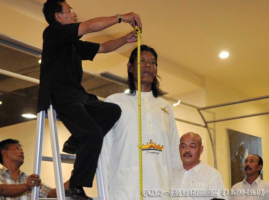 日前,印度尼西亞傳出一個(gè)名叫蘇帕華諾的男子身高達(dá)2.71米,可能是全球第一高人。不過(guò)據(jù)后來(lái)實(shí)際測(cè)量,蘇帕華諾其實(shí)身高2.42米,并未打破吉尼斯紀(jì)錄。圖片來(lái)源:中國(guó)新聞網(wǎng)>>點(diǎn)擊觀看詳細(xì)內(nèi)容