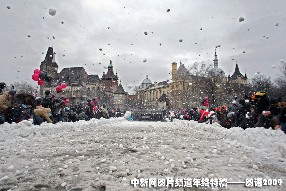 最多人集體打雪仗:1月31日,匈牙利一家公司組織人們在首都布達(dá)佩斯的一個(gè)公園內(nèi)集體打雪仗,他們希望打破美國密歇根理工大學(xué)在2006年創(chuàng)下的3700多名學(xué)生集體打雪仗的吉尼斯世界紀(jì)錄。圖片來源:中國新聞網(wǎng)