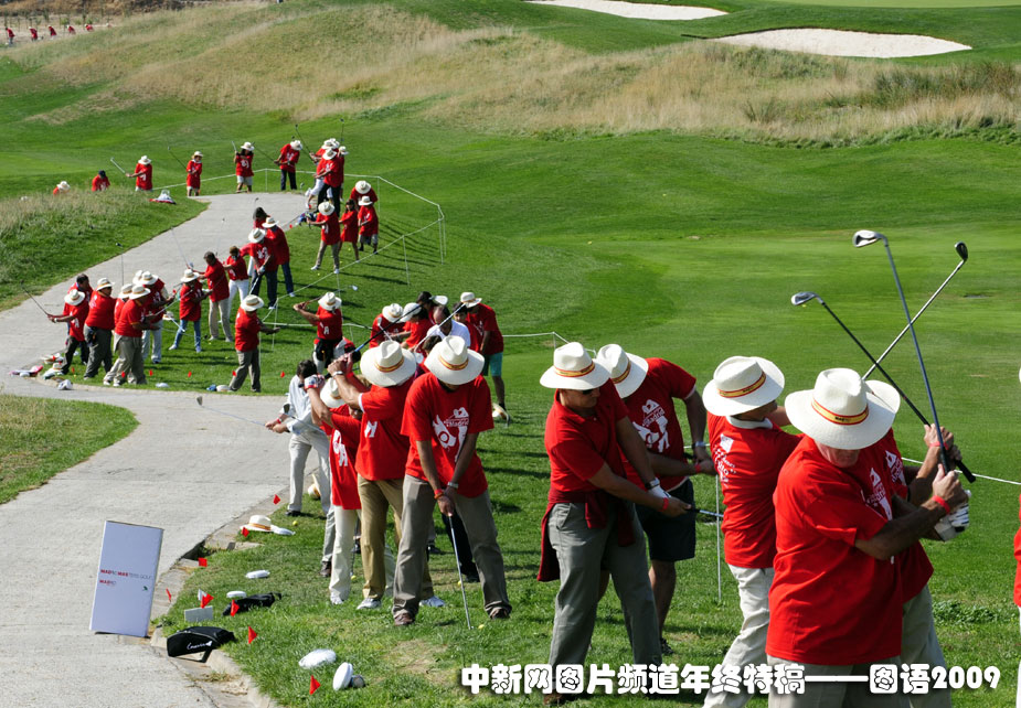 最多人同打高爾夫球:9月27日,2016名高爾夫球手在西班牙首都馬德里的國家高爾夫球中心同打高爾夫球,創(chuàng)造了一項新的吉尼斯世界紀錄。圖片來源:中國新聞網(wǎng)
