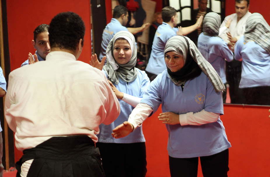 近日,埃及“女子警衛(wèi)”在開羅郊區(qū)一個(gè)體育館進(jìn)行訓(xùn)練。她們專為有一定社會(huì)地位和名氣的女性提供服務(wù)。圖片來源:中國(guó)新聞網(wǎng)