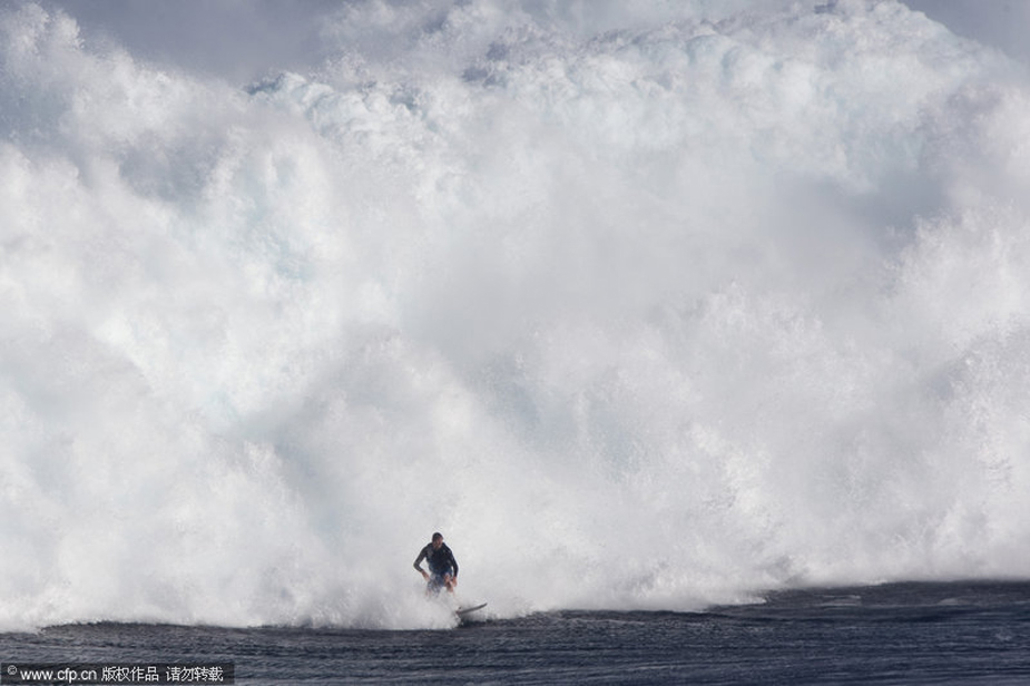 12月8日,美國夏威夷出現15米高罕見巨浪,一些勇敢的沖浪者都來到這里進行挑戰(zhàn)。圖片來源:CFP