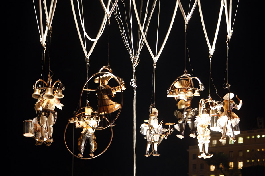 12月9日,墨西哥音樂(lè)舞蹈藝術(shù)家們進(jìn)行了一場(chǎng)“空中快車”表演,摩納哥的藝術(shù)家們吊在起重機(jī)上演奏樂(lè)器并表演空中舞蹈。圖片來(lái)源:中國(guó)新聞網(wǎng)