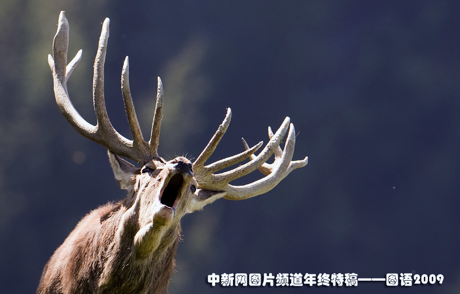 奧地利蒂羅爾州的一個(gè)野生動物園內(nèi),一只發(fā)情的雄鹿在嘶吼。