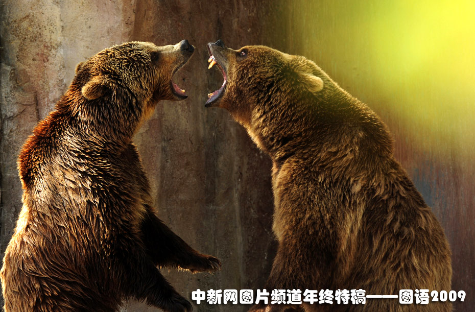西班牙馬德里動物園內(nèi),兩只灰熊“爆發(fā)戰(zhàn)爭”。