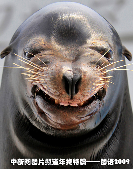 日本東京,一只調(diào)皮的海獅在對(duì)著觀眾們“微笑”。