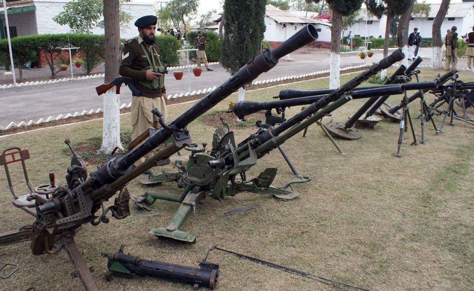 12月12日,在巴基斯坦西北部開伯爾部落地區(qū),巴基斯坦軍方抓獲多名塔利班武裝分子,繳獲大量軍火。圖片來源:中國(guó)新聞網(wǎng)