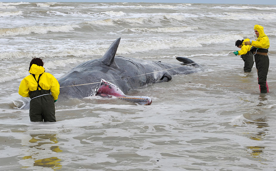 一群抹香鯨12月12日在意大利南部海灘擱淺,其中至少5頭已經(jīng)死亡。據(jù)稱,這群抹香鯨共有9頭,其中有2頭經(jīng)過救援已成功游回大海,目前相關(guān)人員對另外2頭正在進行救援。圖片來源:中國新聞網(wǎng)