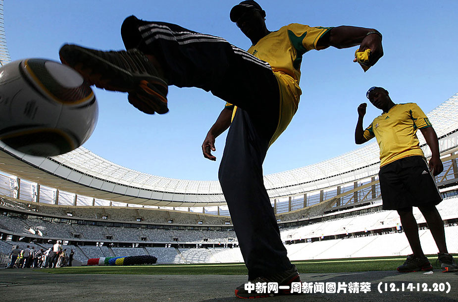 南非開普敦的新體育場竣工儀式在14日(周一)舉行,圖為球迷們在儀式上進行表演。該體育場是為明年南非足球世界杯而建,可容納6.8萬名觀眾。圖片來源:中國新聞網(wǎng)