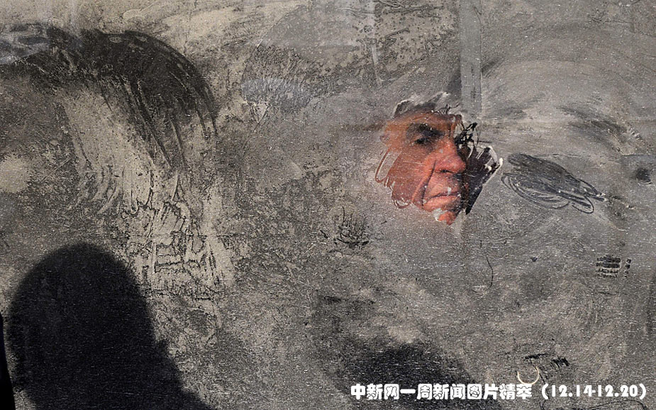 15日(周二),烏克蘭首都基輔的氣溫降至攝氏零下16度,圖為一名男子在公交車上透過結(jié)冰的車窗往外看。圖片來源:中國新聞網(wǎng)