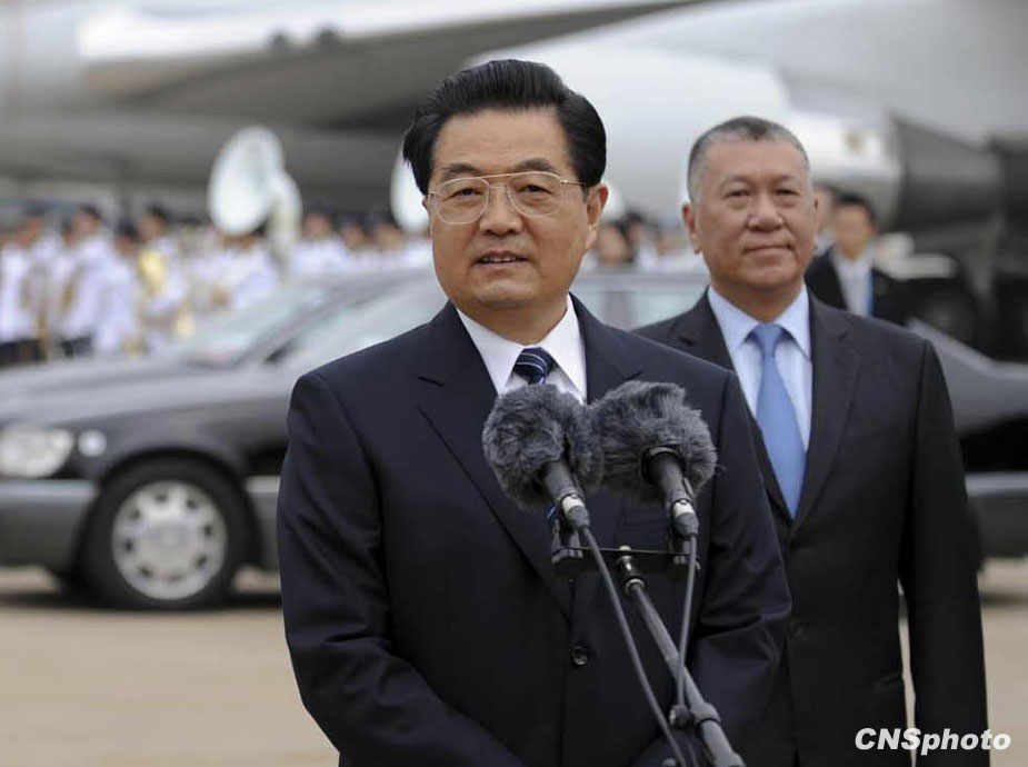 12月19日中午,中共中央總書(shū)記、國(guó)家主席、中央軍委主席胡錦濤乘專(zhuān)機(jī)抵達(dá)澳門(mén)并在機(jī)場(chǎng)發(fā)表講話(huà)。中新社發(fā) 廖攀 攝