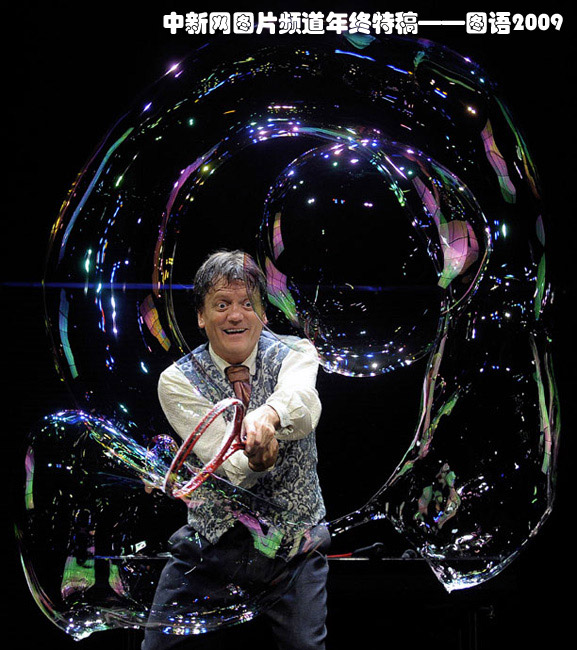 7月23日,西班牙國際肥皂泡藝術(shù)家皮蓬-玻爾在巴塞羅那進行肥皂泡藝術(shù)表演。
