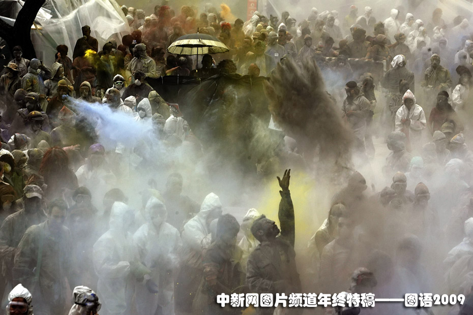 3月2日,人們?cè)谙ED雅典西北小城加拉希迪的街道上用加了各種天然顏料的面粉互相投撒,表達(dá)祝福。