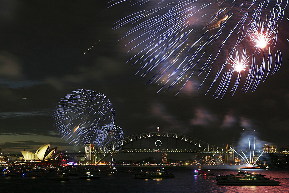 圖為12月31日,絢麗的煙花與悉尼灣大橋和悉尼歌劇院交相輝映。澳大利亞悉尼市當(dāng)晚舉行焰火表演,迎接即將到來(lái)的新年。