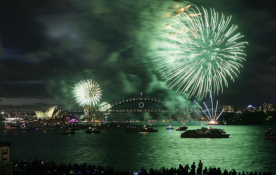 圖為12月31日,絢麗的煙花與悉尼灣大橋和悉尼歌劇院交相輝映。澳大利亞悉尼市當(dāng)晚舉行焰火表演,迎接即將到來(lái)的新年。