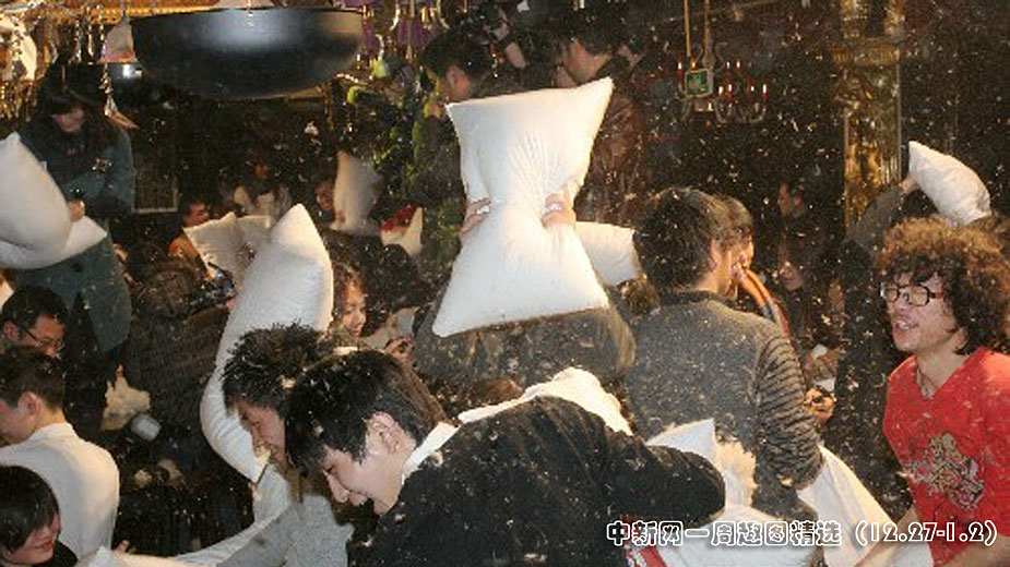 12月27日下午,武漢漢口江灘夜色酒吧,80特區(qū)舉行五百人枕頭大戰(zhàn)狂歡派對(duì)。80后青年在主持人帶領(lǐng)下展開了3個(gè)小時(shí)的互動(dòng)游戲。在主打活動(dòng)“枕頭大戰(zhàn)”中,青年人歡笑、奔跑、跳躍,用裝滿羽毛的白色大枕頭展開對(duì)決。據(jù)了解,枕頭大戰(zhàn)是當(dāng)今流行的一種緩解工作、生活壓力的減壓聚會(huì)方式。圖片來源:中國(guó)新聞網(wǎng)>>點(diǎn)擊觀看詳細(xì)內(nèi)容