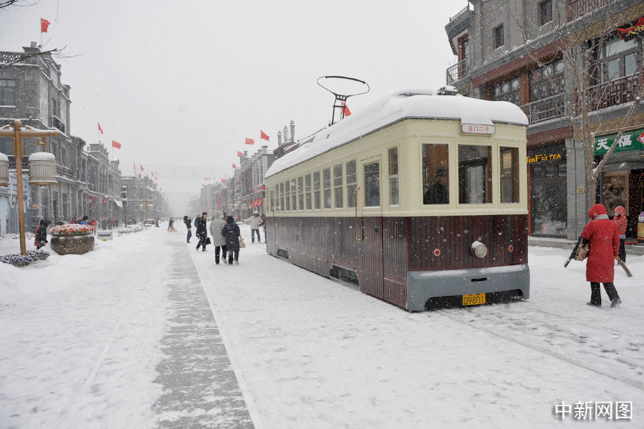 大雪中的北京前門商業(yè)區(qū)。中新網(wǎng)記者 金碩 攝