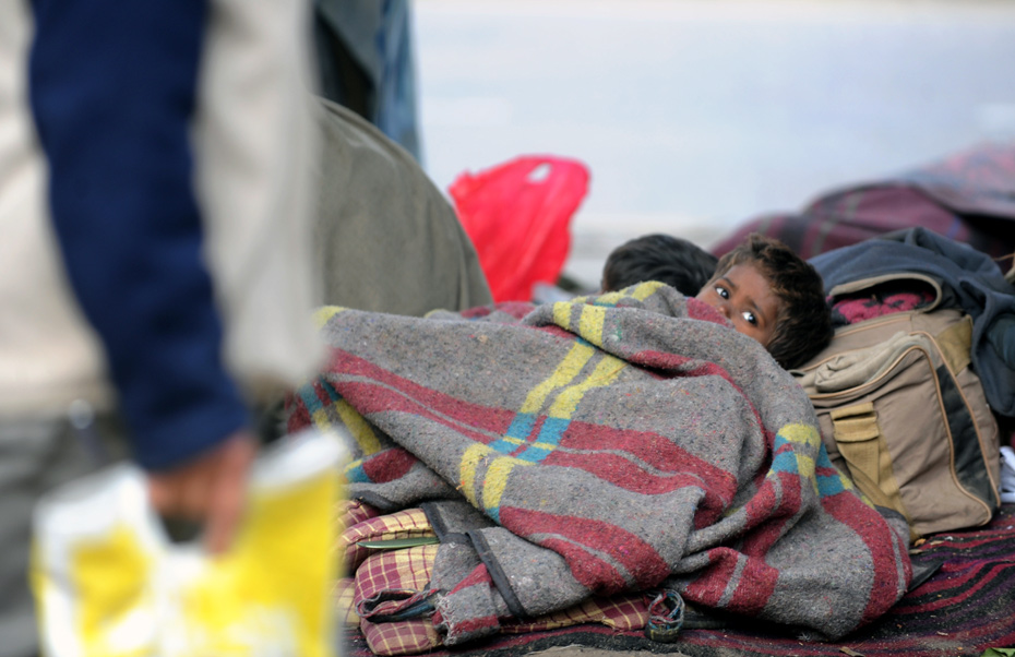 1月4日,印度新德里,一個(gè)無(wú)家可歸的兒童蜷縮在毯子里,印度官員稱,該國(guó)北部地區(qū)突遭寒流襲擊造成至少40人死亡,促使政府4日不得不關(guān)閉上千所學(xué)校并發(fā)放取暖燃料 。
