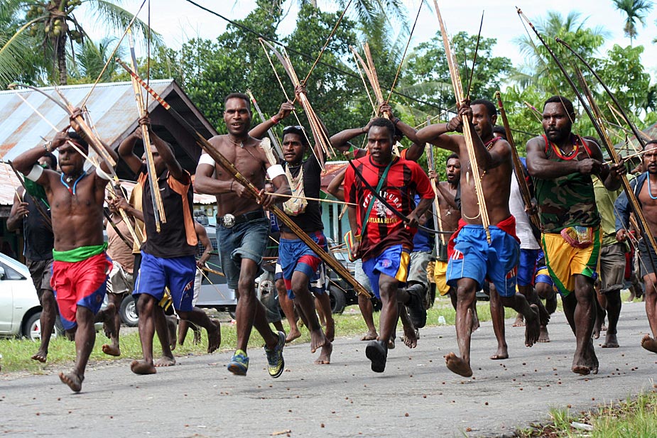 1月6日,印尼巴布省的兩個(gè)村落因債務(wù)問題引發(fā)了武裝爭斗,雙方手持弓箭等原始武器進(jìn)行了一場原始的戰(zhàn)爭。目前,這場沖突已經(jīng)造成多人傷亡。圖片來源:中國新聞網(wǎng)