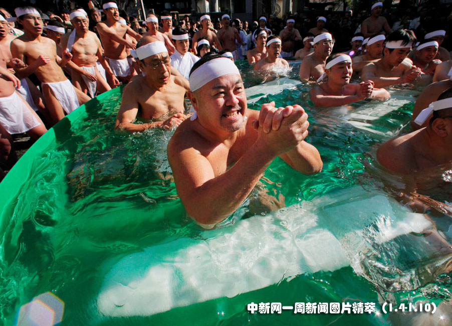 1月10日(周日),日本東京,一群健身愛好者在冷水中浸泡,“比拼”毅力。圖片來源:中國新聞網(wǎng)