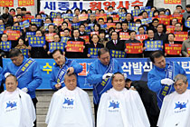 韓國(guó)議員剃頭抗議政府