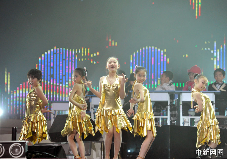 1月11日晚,第二屆音樂風(fēng)云榜新人盛典在京舉行,盛典現(xiàn)場的音樂課上,兒童版的Wonder Girl、Super Junior、邁克爾·杰克遜、曾軼可、大張偉紛紛登臺獻(xiàn)藝,讓現(xiàn)場觀眾們笑聲不斷。中新網(wǎng)記者 金碩 攝