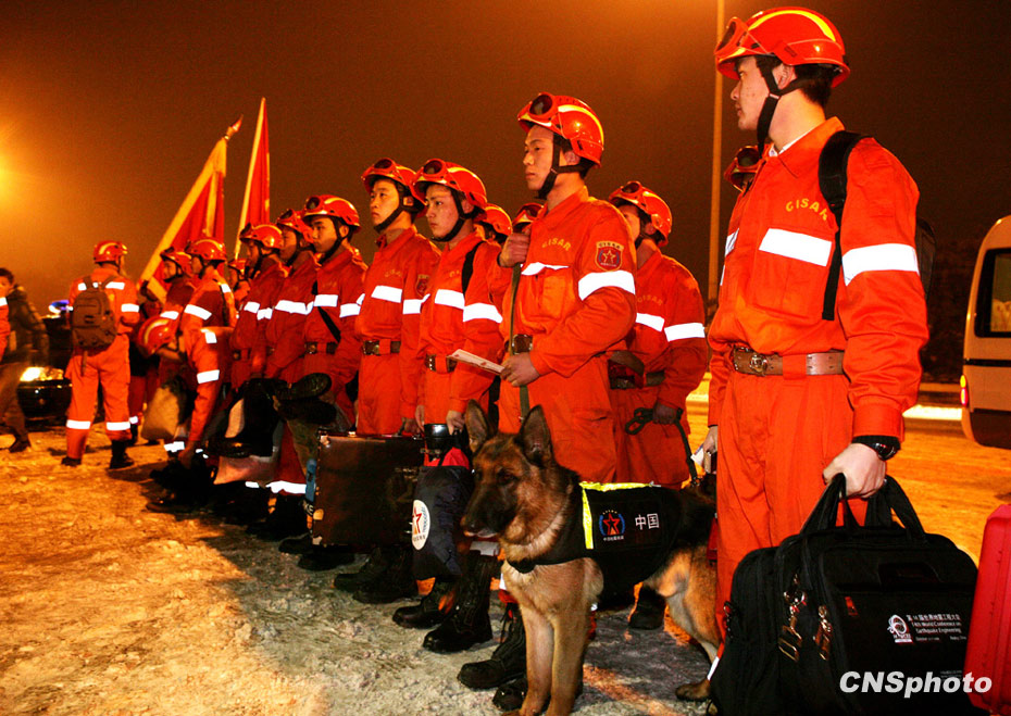 1月13日晚,中國國際救援隊從首都國際機場搭乘飛赴海地執(zhí)行救援任務。據(jù)悉,救援隊一行共計68人,由三個分隊組成,包括來自國家地震局的10人專家分隊等。據(jù)了解,救援隊隨機攜帶了總價值約1200萬元人民幣的10余噸救災物資,其中包括救援、通訊、后勤保障、醫(yī)療、食品在內(nèi)等物資設備和三只搜救犬。中新社發(fā) 雷虹 攝