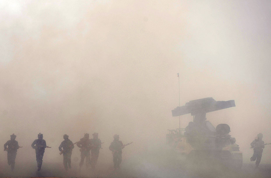 圖為印度陸軍在建軍節(jié)表演實(shí)戰(zhàn)技能。