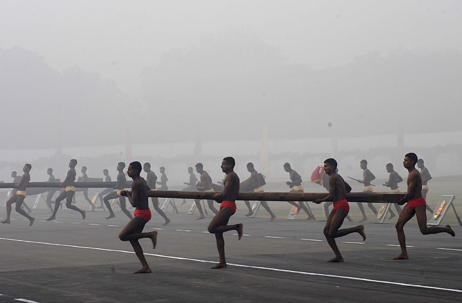 1月15日,在印度首都新德里舉行的建軍節(jié)閱兵式上,印度士兵接受檢閱。圖片來源:中國新聞網(wǎng)