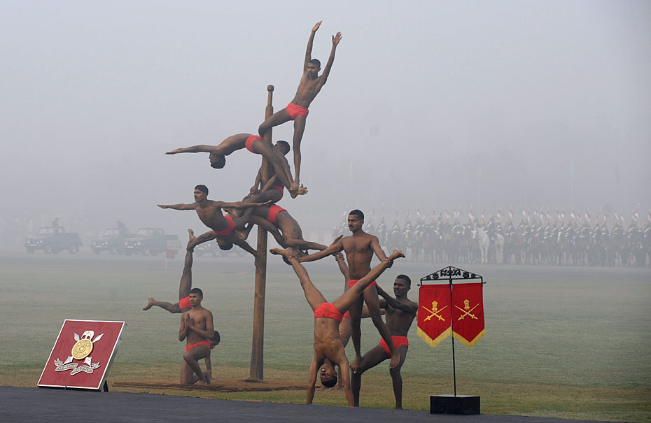1月15日,在印度首都新德里舉行的建軍節(jié)閱兵式上,印度士兵接受檢閱。圖片來源:中國(guó)新聞網(wǎng)