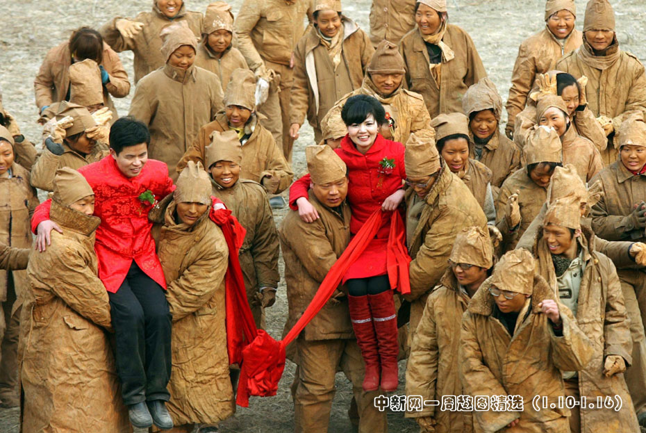 1月10日,四個"泥人”用手搭成原始花轎抬著一對新人在鄭州黃河岸邊別出心裁的舉行婚禮。新人面向孕育了中華民族五千年文明的黃河,一拜天地,二拜高堂,之后,夫妻鞠躬對拜。在世風(fēng)奢華、婚禮鋪張的當(dāng)下,一對新人在茫茫黃河邊,讓厚土為證,海誓山盟,喜結(jié)連理,以行為藝術(shù)形式表達人們保持本真、適應(yīng)環(huán)境的心聲。圖片來源:中國新聞網(wǎng)>>點擊觀看詳細(xì)內(nèi)容