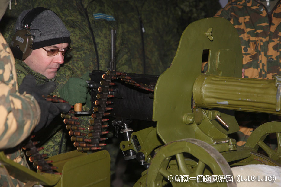 當?shù)貢r間1月14日,俄羅斯總統(tǒng)梅德韋杰夫在莫斯科郊外參觀二戰(zhàn)軍事武器展覽,并且體驗各種武器裝備圖片來源:中國新聞網(wǎng)>>點擊觀看詳細內(nèi)容