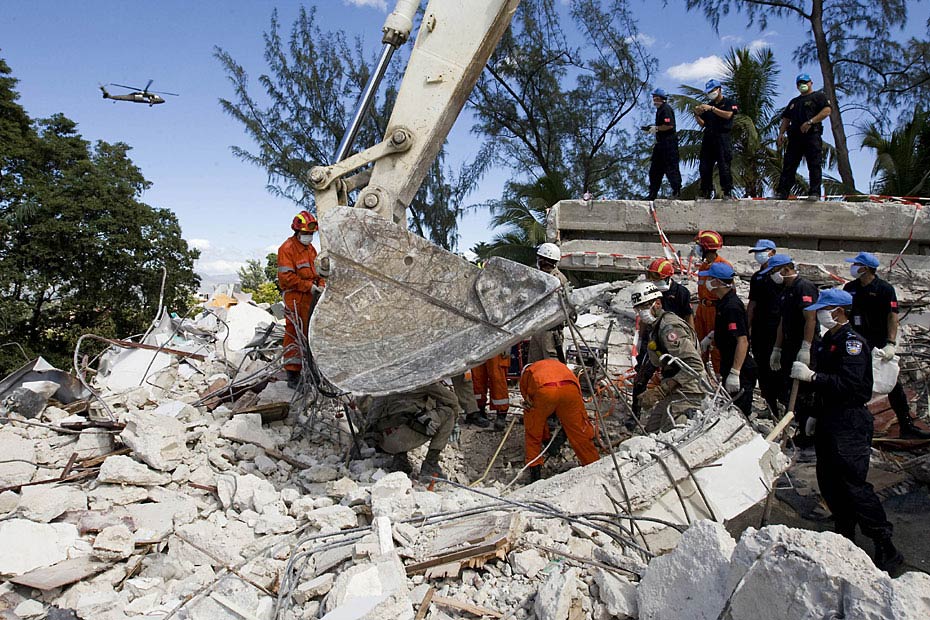 1月16日,海地首都太子港,中國國際救援隊在聯(lián)海團總部對遇難者進行搜尋工作。此前八名中方失蹤人員的遺體已全被找到。圖片來源:中國新聞網