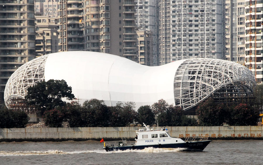 2010年1月21日上海迎來(lái)世博會(huì)開(kāi)幕倒計(jì)時(shí)100天。世博會(huì)場(chǎng)館建設(shè)進(jìn)入最后沖刺階段,部分場(chǎng)館已形象初顯。圖為外形呈“白云”造型的中國(guó)航空館。鈕一新/CFP