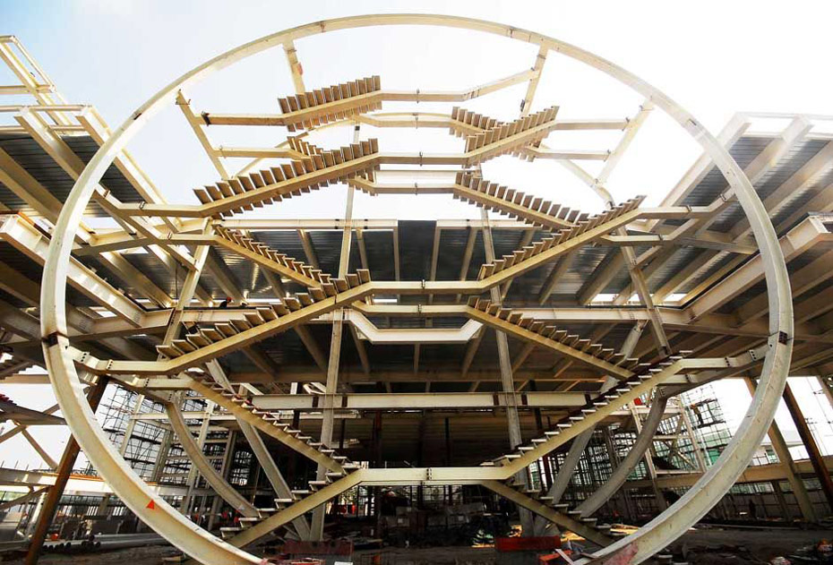 2010年1月21日上海迎來(lái)世博會(huì)開幕倒計(jì)時(shí)100天。世博會(huì)場(chǎng)館建設(shè)進(jìn)入最后沖刺階段,部分場(chǎng)館已形象初顯。圖為韓國(guó)館。鈕一新/CFP