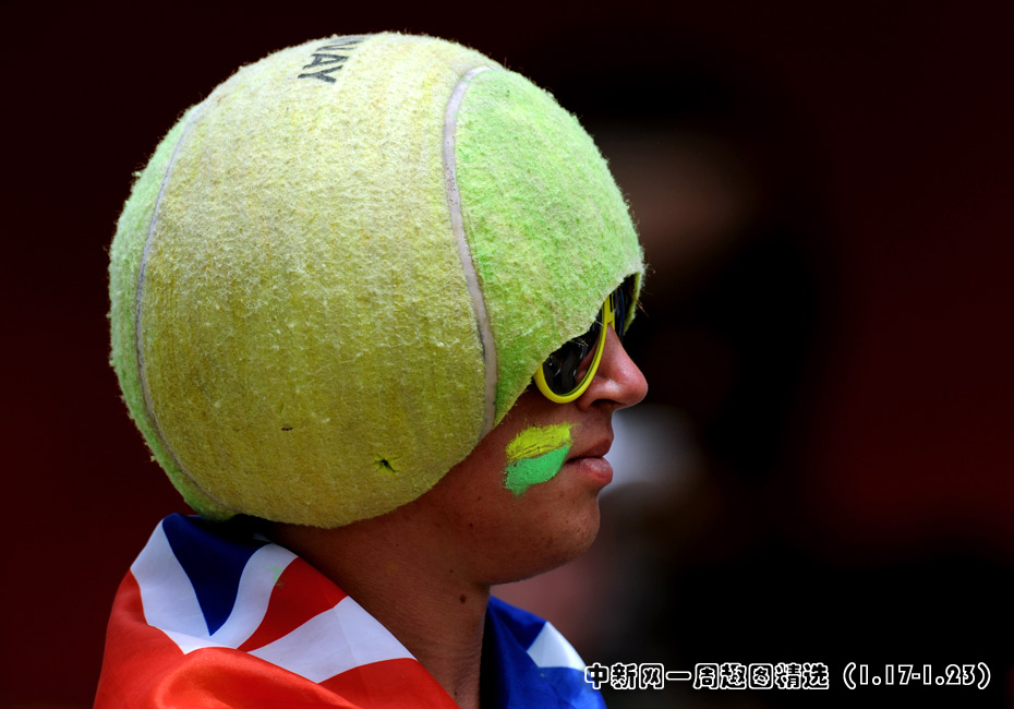 1月21日,澳大利亞墨爾本網(wǎng)球公開賽的第四天,一個(gè)頭戴巨型網(wǎng)球帽的觀眾在看臺(tái)上顯得格外特別。圖片來源:中國(guó)新聞網(wǎng)