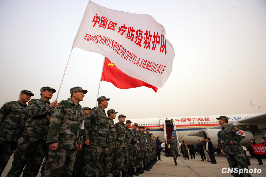 1月24日18時(shí),由中國人民解放軍醫(yī)護(hù)人員和管理人員組成的中國醫(yī)療防疫救護(hù)隊(duì)一行40人乘坐軍運(yùn)包機(jī)離開北京,啟程前往海地進(jìn)行人道主義救援任務(wù)。