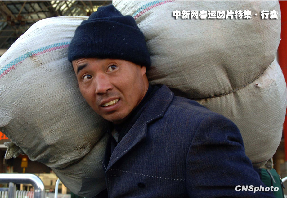 春節(jié)臨近,出門在外的人拎著大包小包地回家過年。這行囊或重或輕,可能是帶給父母的孝敬,也可能是帶給愛人的心動,但每個行囊中一定都會裝著人們一年來收獲的喜悅之情。中新社發(fā) 鄒憲 攝