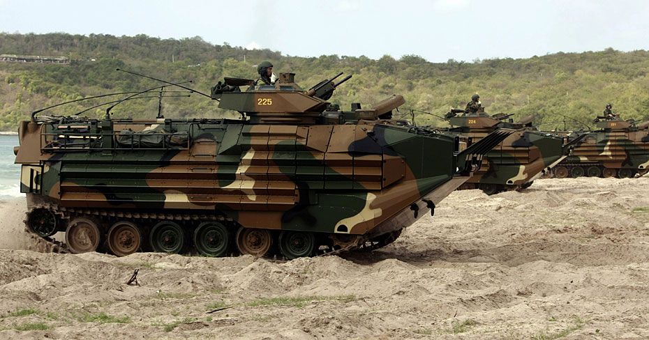 2月4日,參加“金色眼鏡蛇”聯(lián)合軍演的各國軍隊,在泰國的Rayong省沙灘進行了兩棲登陸演練。本次聯(lián)合軍演共有來自泰國、美國、印度尼西亞、新加坡、日本、韓國的約1.4萬名軍人參加。圖片來源:中國新聞網(wǎng)