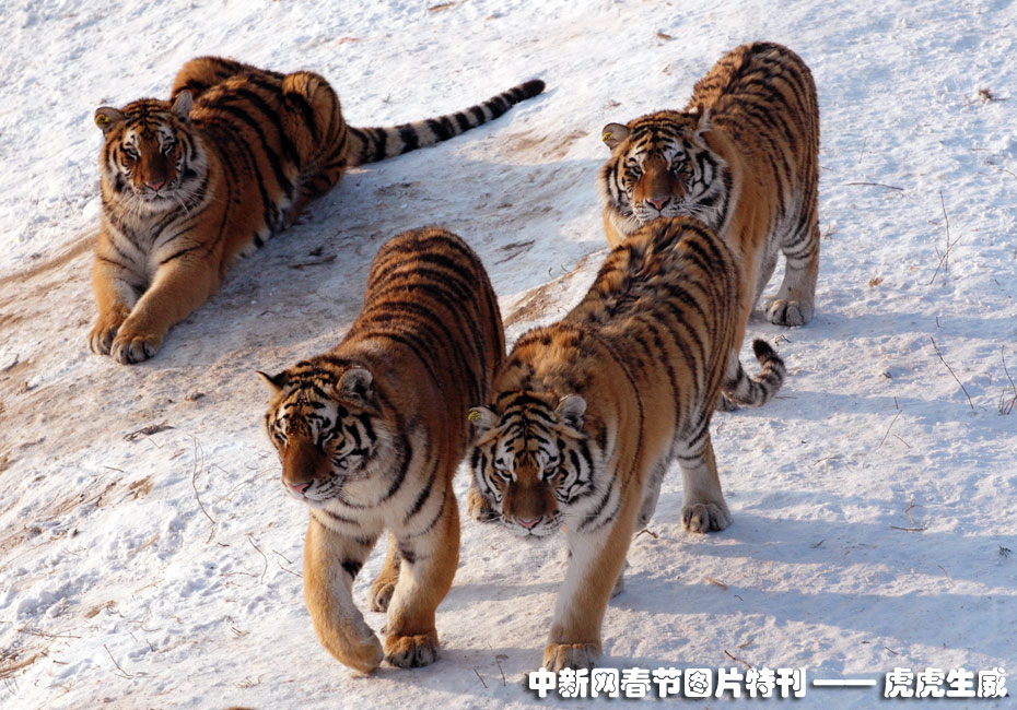 1月13日,黑龍江東北虎林園,老虎在雪地中嬉戲追逐。(王少華 張書儉 攝) 圖片來源:中國新聞網(wǎng)