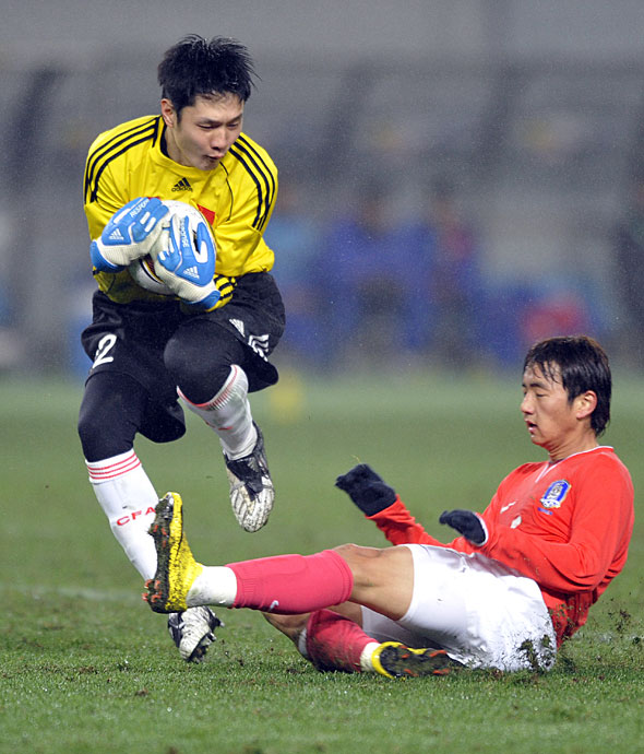 2月10日晚18:15,中國男足國家隊迎來了東亞四強(qiáng)賽第二場與韓國隊的比賽,憑借著于海、郜林和鄧卓翔的進(jìn)球,國足3:0完勝韓國,讓“恐韓癥”成為歷史。圖片來源:中國新聞網(wǎng)