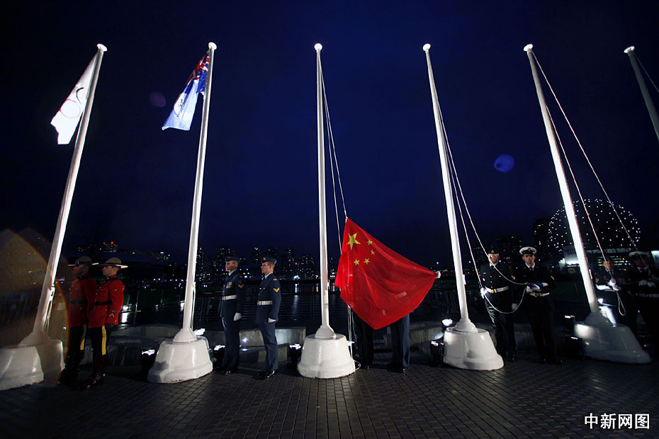 圖為中國國旗在溫哥華冬奧會奧運村升起。
