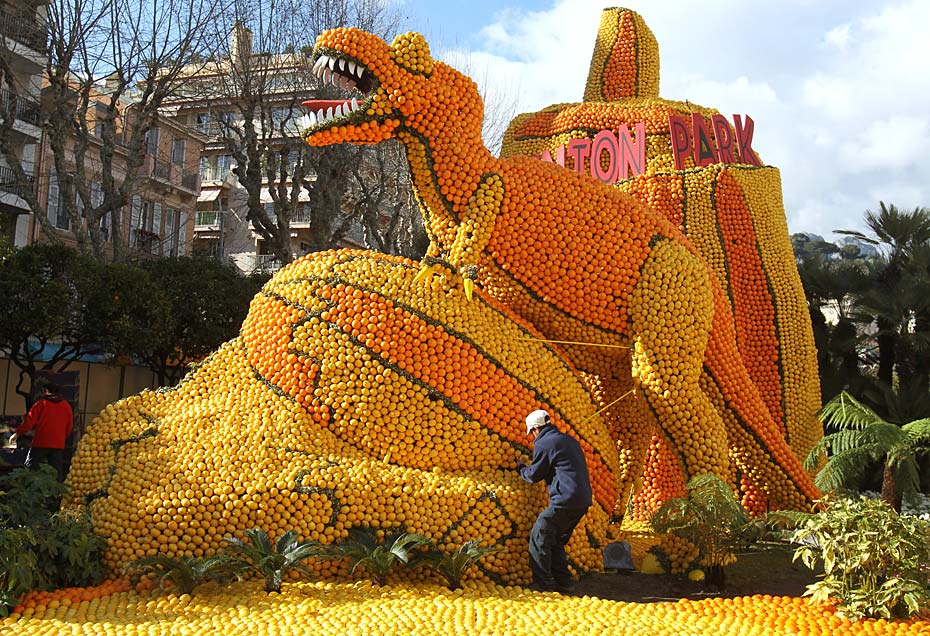 2010年2月10日,法國(guó)芒頓一年一度的檸檬節(jié)拉開(kāi)帷幕。本次檸檬節(jié)將于3月3日結(jié)束。圖片來(lái)源:中國(guó)新聞網(wǎng)